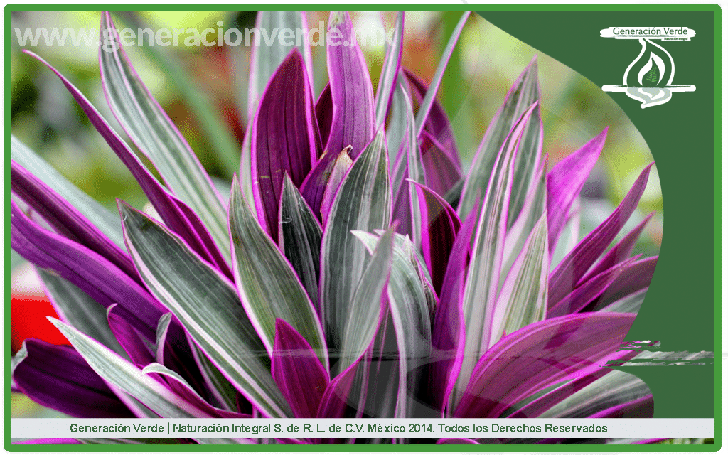 -Descripción: Planta herbácea y perenne provisto de tallos cortos, hojas lineales de 30 cm de largo y 7 cm de ancho, la coloración de la hoja es verde en el haz y morado en el envés. Vive más de dos años.